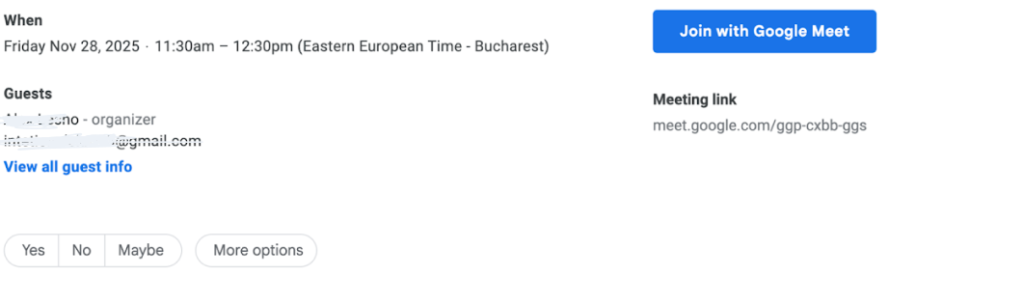 selecting "Yes" in the email calendar invitation.
