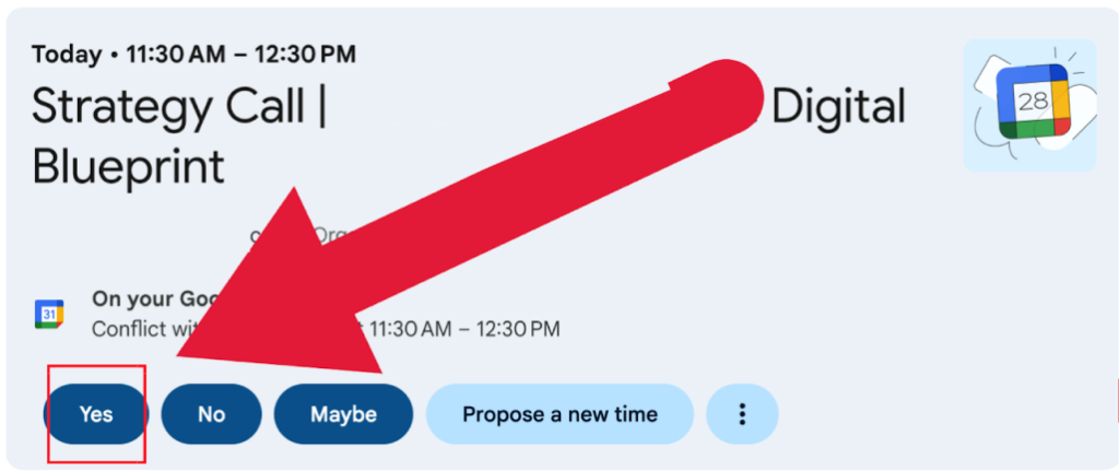 Search your inbox for "Strategy Call". Click "Yes" for the calendar invitation.
